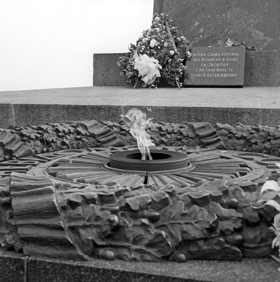 На этом, однако, история застопорилась. И никак не повлияла на киевскую инициативу. 6 ноября 1957 года в парке Вечной славы на берегу Днепра была торжественно открыта первая в стране могила Неизвестного солдата, в которой были перезахоронены останки бойца, найденные на месте боев 1943 года за Лютежский плацдарм7. Чести зажечь Вечный огонь был удостоен маршал Василий Чуйков, в то время возглавлявший Киевский военный округ...