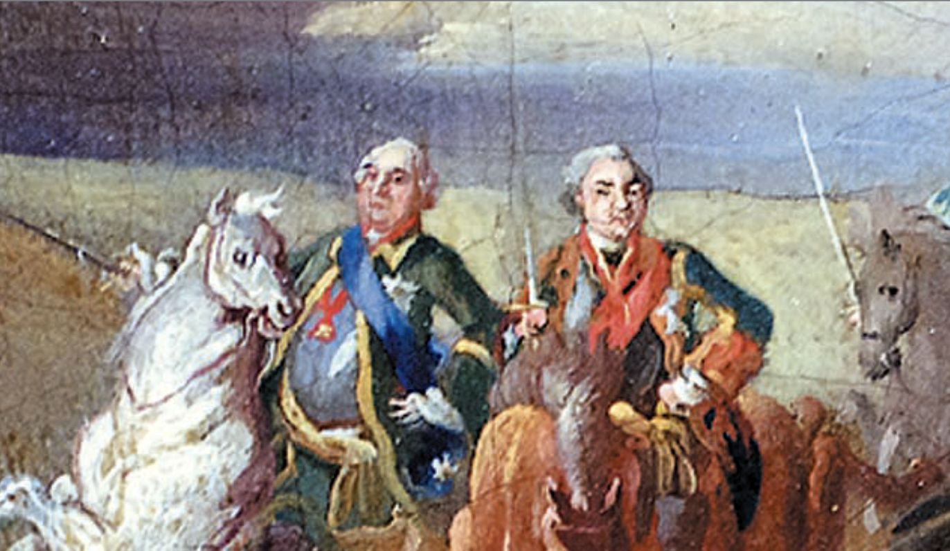 Братьев Шуваловых - графов Петра Ивановича и Александра Ивановича - мы также видим среди персонажей "Конного портрета". Пётр Иванович, младший из братьев Шуваловых, был великим прожектёром и большим мотом: он скончался, задолжав казне один миллион рублей. Князь Михаил Михайлович Щербатов писал о нём так: "Пётр Иванович Шувалов был человек умный, быстрый, честолюбивый, корыстолюбивый, роскошный… Властолюбие его, равно как и корыстолюбие, пределов не имело"24. Но именно этот человек модернизировал русскую артиллерию: накануне Семилетней войны русская армия получила несравненные секретные шуваловские гаубицы и единороги, о которых уже в разгар военных действий, в феврале 1760-го, Ломоносов напишет: