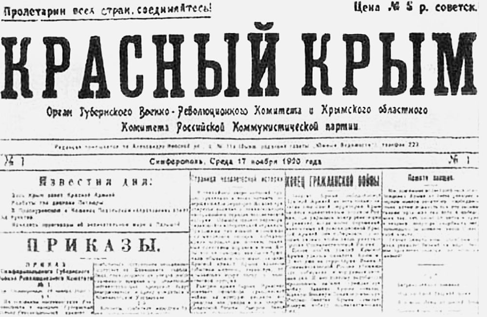 В январе 1920 года на заседании Политбюро ЦК РКП обсуждался вопрос о политической линии в Крыму и, в частности, о форме Советской власти15.