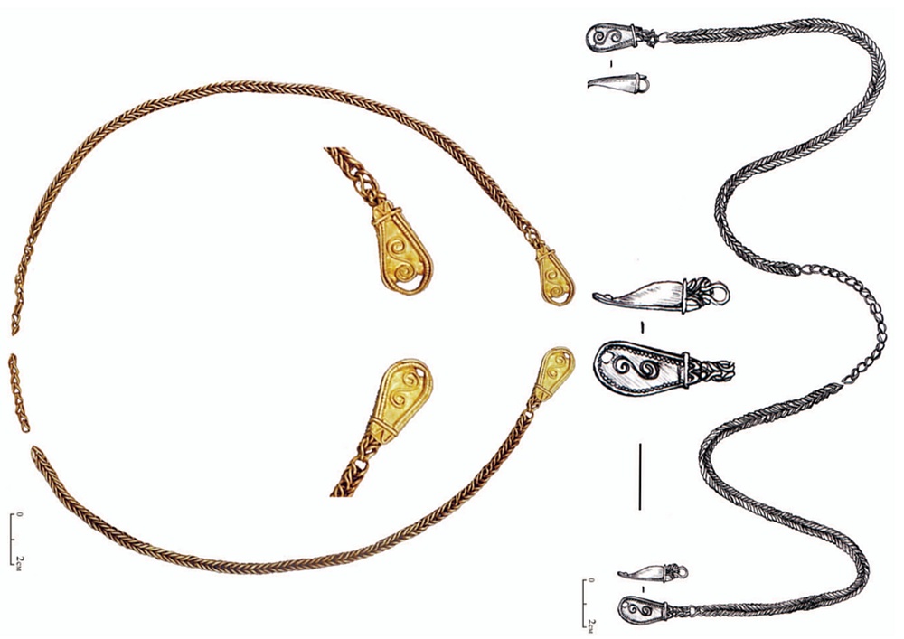 Массивная золотая цепочка (более 60 см), вероятно, ранее висела на шее усопшего. Также были найдены кинжалы, колчаны, более 20 бронзовых наконечников стрел и бронзовое зеркало.