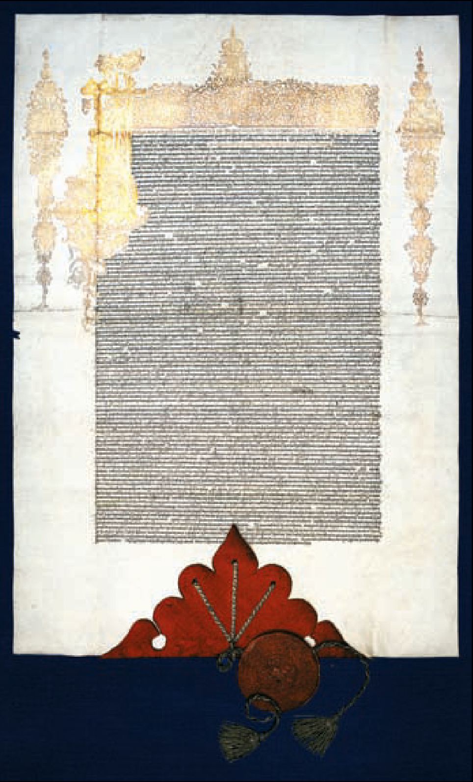 А в сентябре 1628 года в Новгород приехал новый воевода. Это был прославленный князь Дмитрий Михайлович Пожарский. Первым делом он со своим вторым воеводой Моисеем Фёдоровичем Глебовым принимал казну, городские укрепления, "наряд" и боеприпасы, казённые склады с провиантом, документацию по "оброчным статьям" и всё остальное. Знакомились с дворянской корпорацией - "служилым городом", купечеством, иноземными торговыми представителями. До архива руки дошли только в январе 1629 года, и тут воевод ждал сюрприз. Среди дел за 1627 год обнаружилась немыслимая вещь: подлинный государственный документ - дипломатическая "харатейная" (пергаменная) грамота, подлинник, украшенный золотым орнаментом и бывший одним из документов, которые посол князь Фёдор Петрович Барятинский в 1617-м отвёз в Швецию в связи с ратификацией мирного договора и пограничного разграничения2. Он был послан в Швецию 1 июля 1617 года для приёма ратификации Столбовского мирного договора; переговоры с Г. Стенбоком и другими послами по пограничному соглашению шли на реке Лавуе со 2 октября 1617-го по 14 февраля 1618 года и затем в Стокгольме, а 20 июня князь выехал в Москву. Но каким образом этот важный документ оказался не в Посольском приказе в Москве и не в соответствующем ведомстве в Стокгольме? Вместе с грамотой лежала записка "без дьячьей приписи", из которой новый воевода узнал всё то, о чём мы только что рассказали…