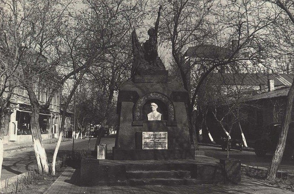 И это не просто памятник, а могила, в которой похоронен Александр Евдокимович Трусов. Его именем в советский период была названа и улица Эспланадная.