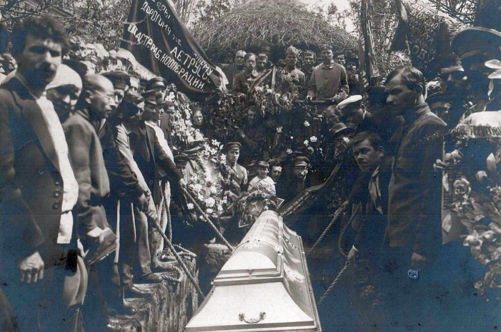 Четырехметровый памятник на месте погребения Трусову установили 28 августа 1922 года. Это высокий массивный постамент, сложенный из кирпича и оштукатуренный. Наверху - фигура рабочего-революционера, преклонившего колено.