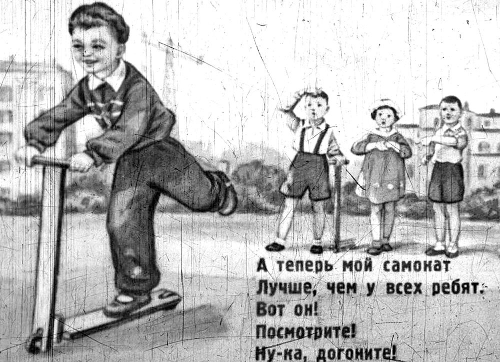 "Во дворе мальчишки катались на самокатах, - читаем о конце 1950-х. - Завтра будут перегонки, и Вовке без самоката никак нельзя"21.