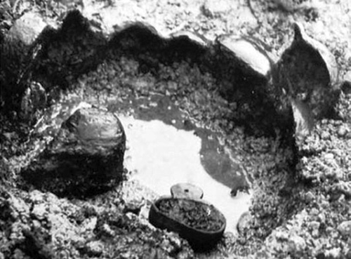 Один из таких объектов был найден в 2009 году в Людином конце средневекового Новгорода (Троицкий раскоп), в самых нижних культурных напластованиях, маркирующих эпоху возникновения города во второй четверти X века. Это была материковая яма с необычным заполнением.