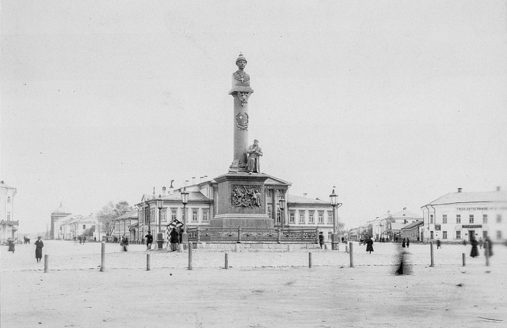 В 1918 году, когда Сусанинскую площадь переименовали в площадь Революции, монумент начали последовательно разрушать. Бюст царя и фигуру Ивана Сусанина уничтожили, в 1928 году сняли колонну и закопали ее в землю здесь же, на площади.