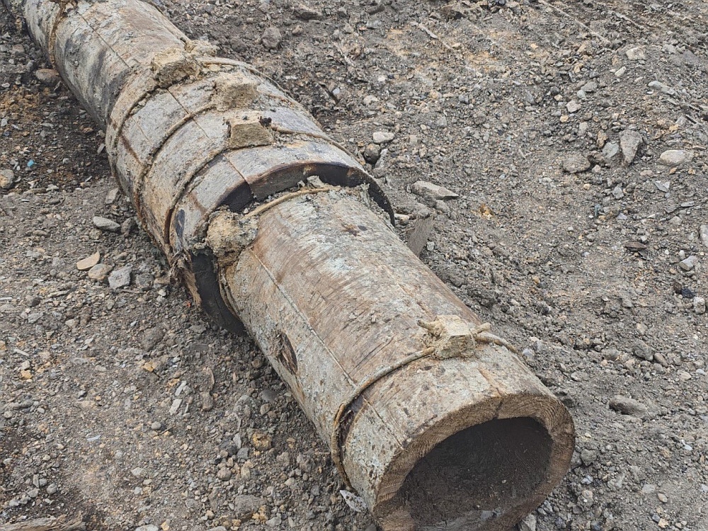 Неожиданную находку сделали сотрудники "Сахалинской коммунальной компании" во время строительства новой газовой котельной на улице Бумажной в Южно-Сахалинске. Под землей обнаружился фрагмент деревянного водовода длиной в несколько метров.