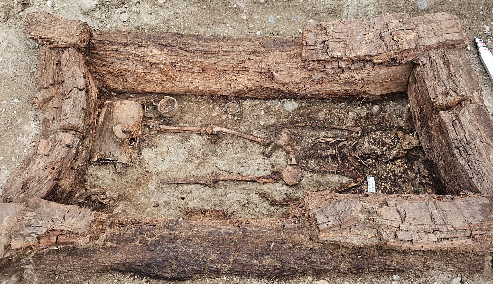 В Хакасии обнаружили новые захоронения таштыкской археологической культуры (середина I тысячелетия нашей эры) с разрисованными масками и куклами-копиями. Как рассказал в своем Телеграм-канале археолог Петр Амзараков, в погребениях удалось найти классический набор: бочонок, керамические горшки, деревянный кувшин, мешочки с зерном, берестяной туес-накостник.