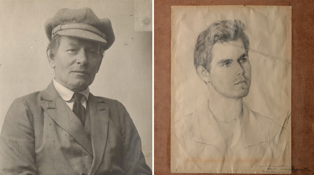 И самый большой сюрприз преподнес портрет "Член ВИКа". На нем художник написал люговского жителя Василия Константиновича Копалева. Когда стали демонтировать графический рисунок с подложки из ДВП, на обратной стороне обнаружили еще один портрет. Зарисовка без подписи, мужчина неизвестен. Очевидно, художник посчитал этот портрет крайне неудачным или незначительным, раз попытался "избавиться" от него таким образом - нарисовал на обороте другой портрет.