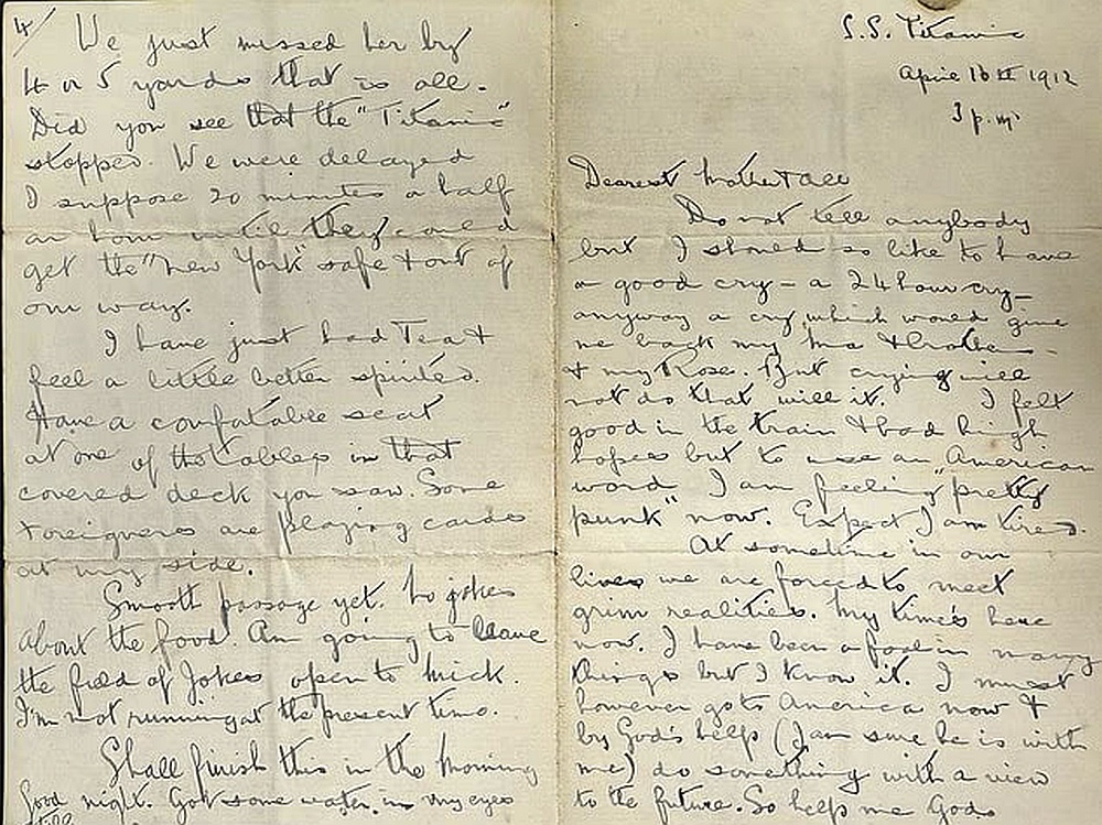 Спустя 113 лет после гибели "Титаника" из семейного архива всплыла трогательная история его реального "Джека" - молодого пассажира третьего класса Эрнеста Томлина. Его письмо, написанное в день отплытия, впервые опубликовано и выставлено на продажу. Документ раскрывает неожиданные подробности, сообщает Daily Mail.