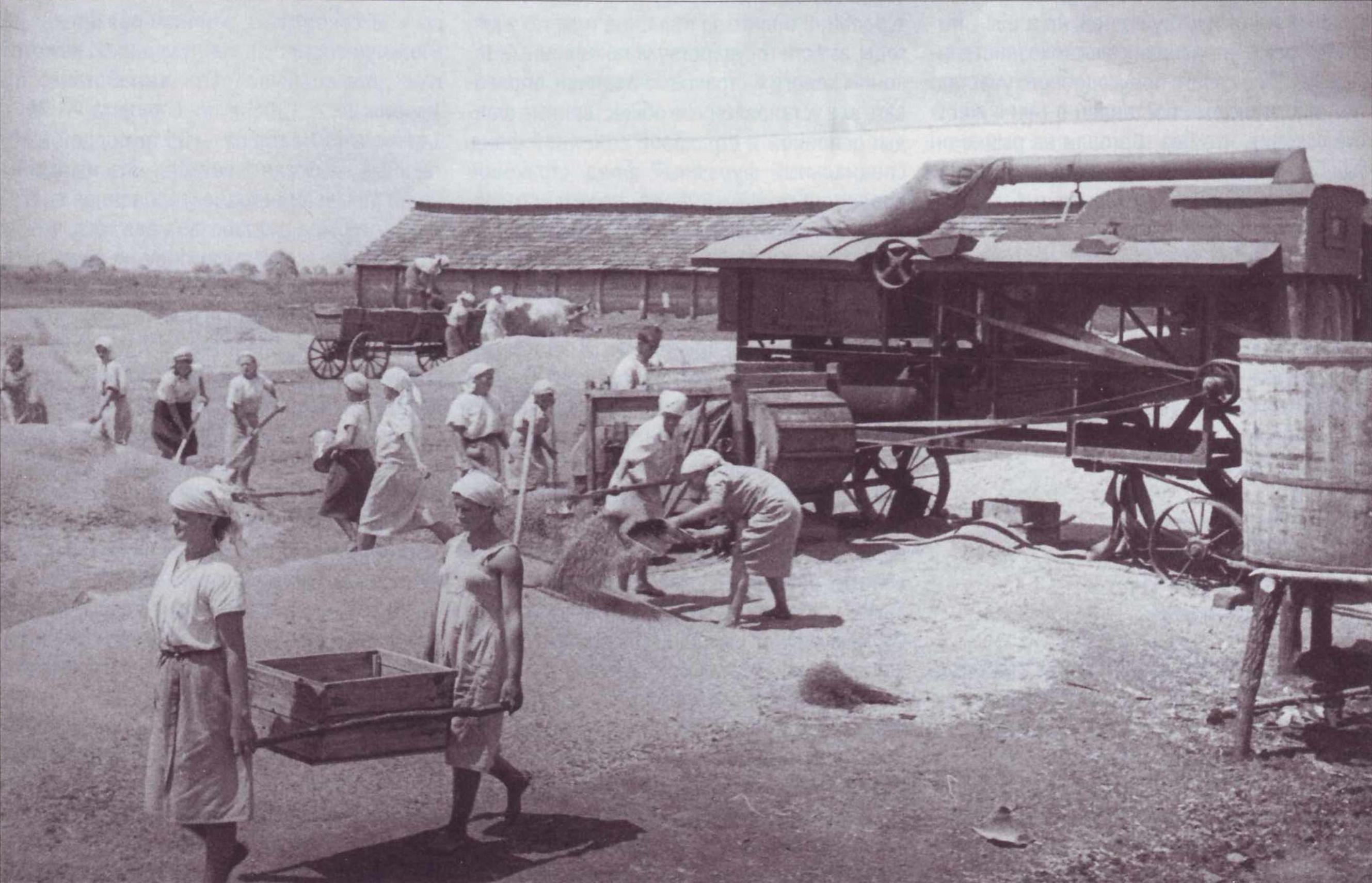 Однако власть не ограничилась только усилением налогового бремени. Государство сознательно проводило антикрестьянскую ценовую политику, суть которой прекрасно изложена в анонимном письме на имя Сталина: "Колхоз за 1 ц зерна получает 4-6 руб., а покупает в государстве хомут за 250 руб., а узду 20-30 руб., вилы 5-10 руб. Молоко сдаёт 15 руб. цент., а жмых покупает в государстве 50-60 руб. центнер"14. В итоге уже через год после окончания войны мобилизационные возможности сельского хозяйства были полностью исчерпаны. У де ревни не осталось никаких внутренних резервов. И без того тупиковая экономическая ситуация была усугублена неблагоприятными погодными условиями. Засуха 1946 года привела к голоду.