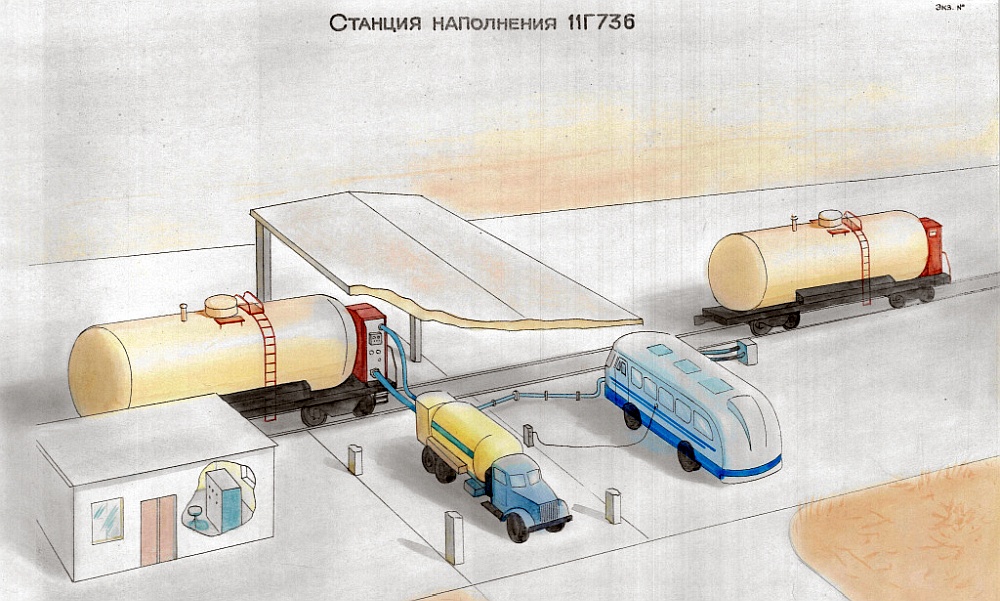 Компоненты топлива доставляли на космодром в железнодорожных цистернах, затем переливали в автозаправщики, откуда жидкий водород и кислород перекачивали в промежуточные емкости на башне обслуживания ракеты. Из промежуточных емкостей заправлялись баки СЭП космического корабля. Эти этапы изображены на рассекреченных аванпроектах.