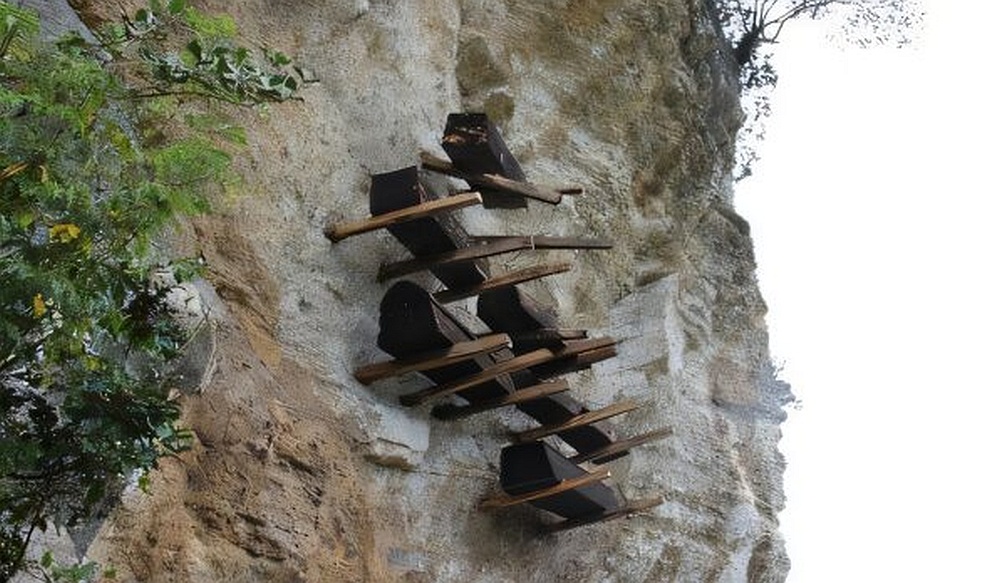 Ученые исследуют захоронения в висячих гробах.