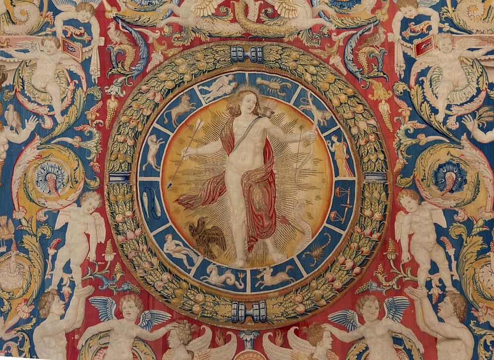 "Аполлон и знаки зодиака" - одна из пяти шпалер серии "Времена года. Гротески", которая была соткана в первой половине XVI века в Брюсселе по картонам неизвестного художника.