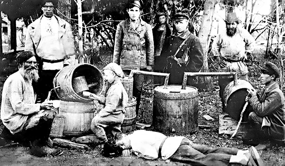 Временное правительство в 1917 г. подтвердило воспрещение "повсеместно в России продажи для питьевого потребления крепких напитков". Не пошли на отмену сухого закона и большевики, запретившие изготовление без разрешения и продажу для питьевого потребления спирта и крепких напитков. Эти запреты породили гигантский спрос на самогон. Уничтожить или хотя бы сократить размеры самогоноварения в условиях Гражданской войны не получилось. Да и при нэпе крестьянам было выгодней продавать не столько зерно, сколько полученный из него первач.