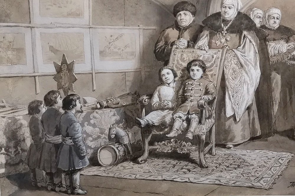 В конце XIX века общество искало опору в прошлом: просвещенное сословие собирало материалы о Древней Руси, Смуте и церковном расколе, меценаты скупали у крестьян предметы старины. Тогда в свет вышел шеститомник "Древности российского государства" с рисунками оружия, костюмов и богослужебной утвари. Впервые началась научная реставрация в Киево-Печерской и Троице-Сергиевой лавре, в Ипатьевском монастыре в Костроме. Историки заинтересовались провинциальными усадьбами, в губернских городах появились краеведческие музеи. В такой обстановке, естественно, стали издаваться новые учебники и книги по русской истории в изложении для детей. И оформлены они были с большим тщанием.