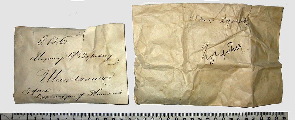 - Сложно сказать, имеют ли надписи отношение к боеприпасам. Скорее всего, это конверты вторичного использования. Что было под рукой, то и взяли для патронов, - считает Иосиф Клягин.