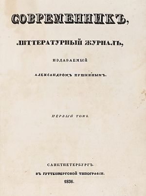 В 1836 году Пушкин стал издавать литературный журнал "Современник". И если в России социальный статус издателя журнала был еще невысок (Пушкин сравнивал себя с золотарем, очищающим русскую литературу), то в Англии периодическая печать уже воспринималась как "четвертая власть", способная оказывать идеологическое и эмоциональное воздействие на читателей и влиять на общественное мнение. Данное Александру Сергеевичу разрешение на издание журнала было новым и несомненным доказательством высочайшего благоволения.