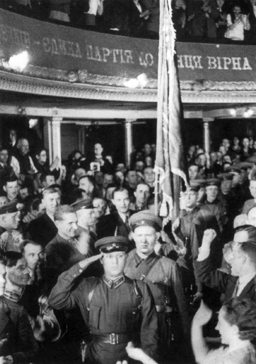 Советская военная техника проходит по улицам Львова после окончания работы Украинского национального собрания. 1939 г.