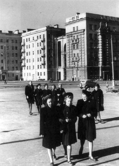 Ленинградские зодчие продолжали ориентироваться на идеалы сталинского ампира и в начале 1955 года. Добротные и богато декорированные здания в 1955 году строились в Автово, на проспекте Энгельса, в Гавани и в центре города - на площади Мира, на Суворовском и Кировском проспектах, но больше всего на проспекте Сталина. Как объясняли архитекторы, "парадно-монументальный, героический и праздничный облик" проспекта связан с идейным смыслом этой главной магистрали въезда в город Ленина11.