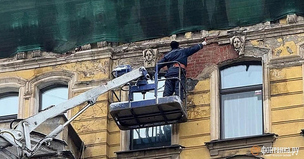 Жители Санкт-Петербурга были поражены тем, как рабочие сбивают лепнину в виде лица девушки с фасада здания на улице Марата, 4. Все это происходит в центре города, напротив станции метро "Маяковская".