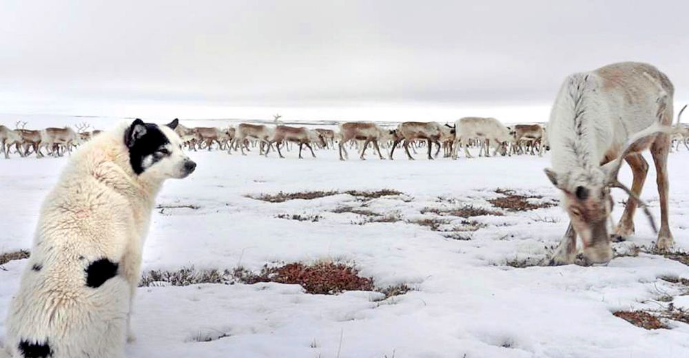 Сэвок - крутой пес, ему шесть лет, умеет собирать стадо, был главным в чуме среди оленегонных собак. Ненцы без них не выживут.