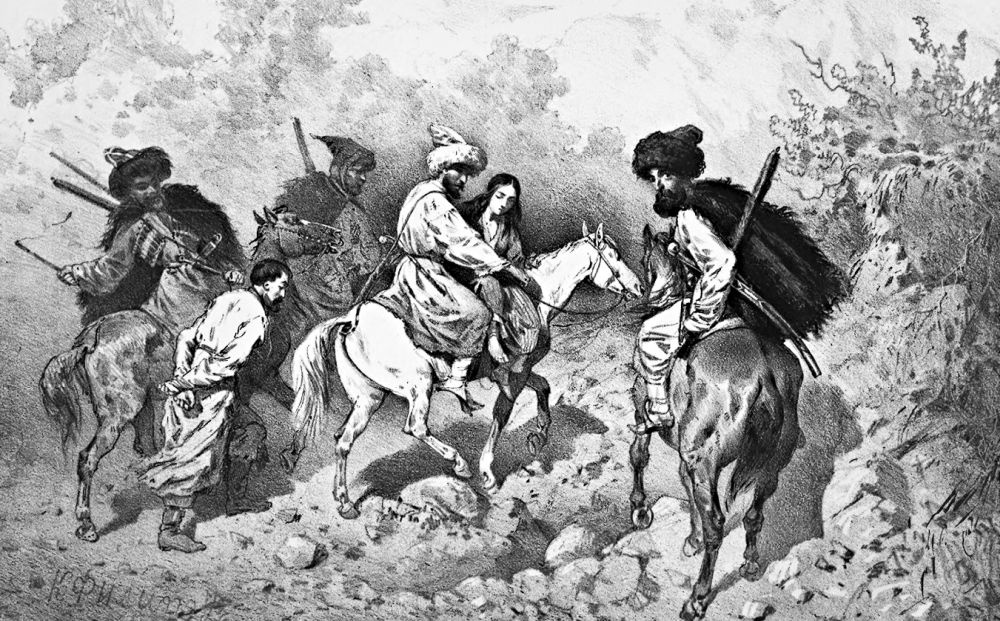 День - 8 февраля 1845 года, ему - 42. "Как раз на половине дороги от аула... меня вдруг схватили неизвестные люди... обнажили свои кинжалы... надели мне на голову какой-то башлык... так, что я не мог ничего видеть; руки мои тоже связали ремнями и повели". На другой день написал записку о выкупе - за 300 рублей серебром. С выкупом никто не торопился. Его подняли еще выше в горы, в холод, снега, к огню. Был обычай - по дороге могли убить. Не убили. "Бог даст, - думал я, - как-нибудь удастся мне бежать из плена, тогда я буду вольный человек и потомство мое всегда будет благодарить меня".