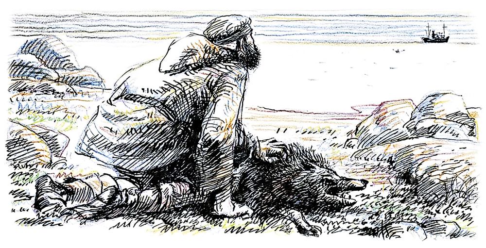 В итоге он наконец выходит, вернее, выползает к морю и видит китобойное судно, которое его подбирает. (Маршрут героя можно без труда проследить по карте: сбившись с пути, он двигался на северо-восток и вышел в долину реки Коппермайн, к заливу Коронейшен Северного Ледовитого океана.).
