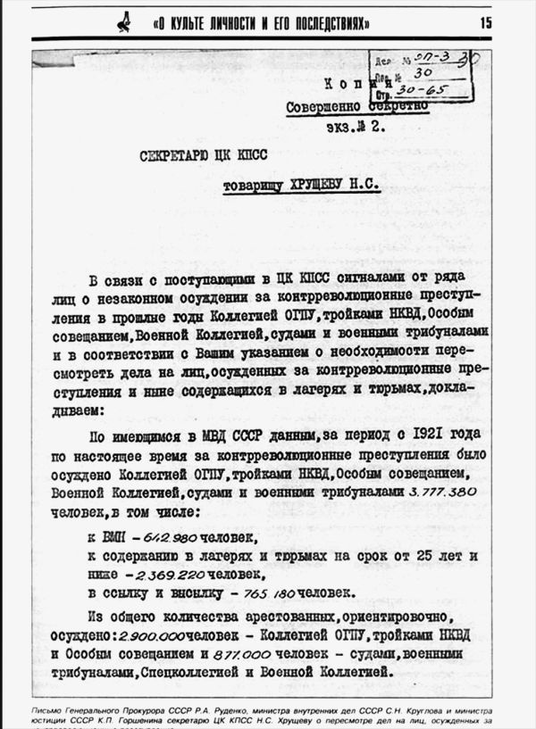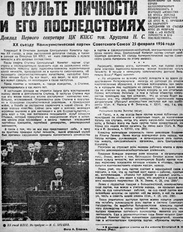 - 1. Н.С. Хрущев. Доклад на закрытом заседании XX съезда КПСС "О культе личности и его последствиях". М.: Госполитиздат, 1959. С. 3.