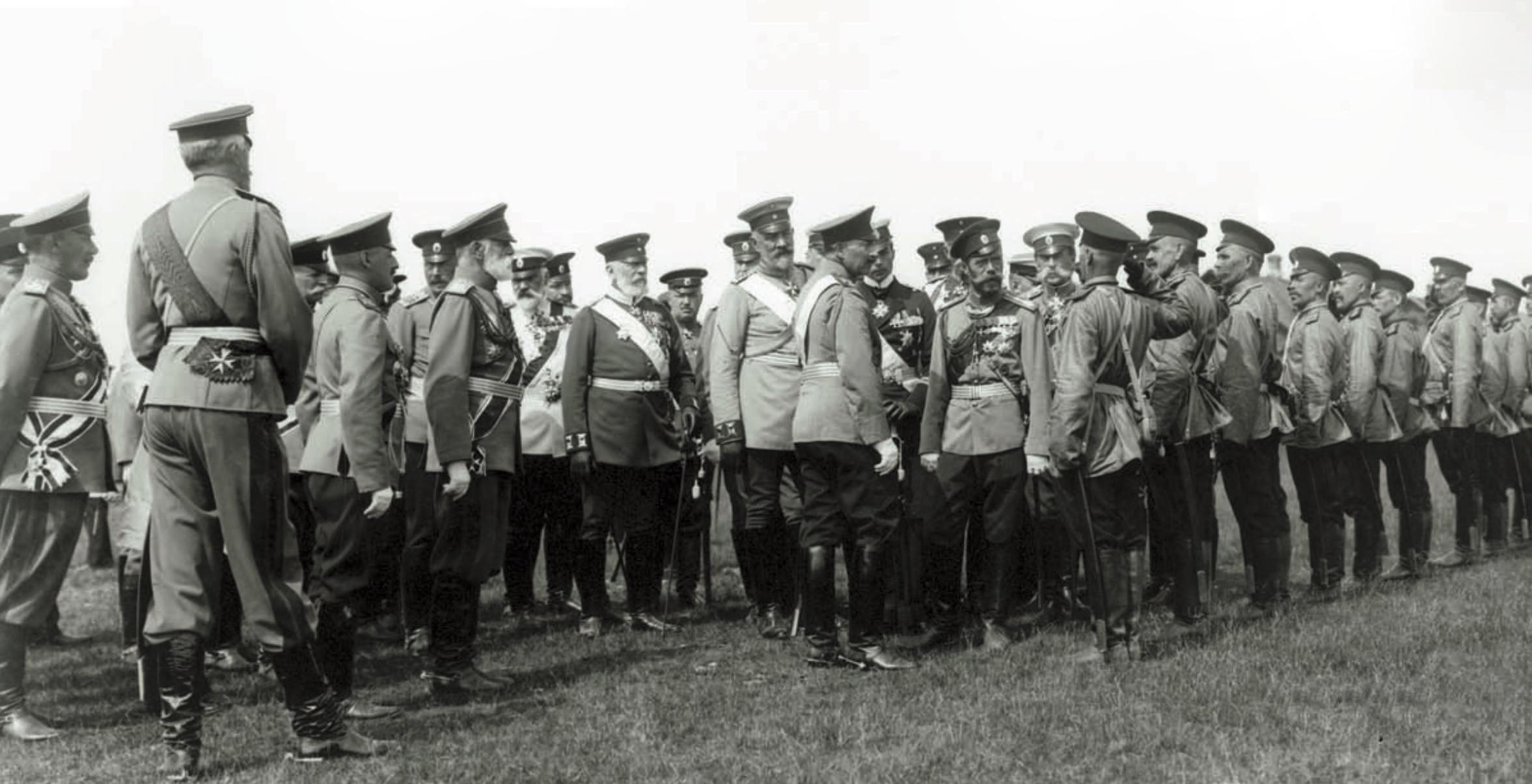 С "Гогенцоллерна" раздавались звуки "Боже, царя храни", и вскоре кайзер со свитой был уже на борту императорской яхты. После официальных приветствий и представлений присутствовавших оба монарха около получаса гуляли по палубе; а в 11 часов кайзер на своей шлюпке отвез царя с братом, великим князем Михаилом, на "Гогенцоллерн", откуда они вернулись лишь в два часа ночи после ужина с пивом. В девять утра Вильгельм II снова прибыл на "Полярную звезду", где монархи больше двух часов пили кофе, уединившись в большой столовой, рассчитанной на восемьдесят персон. Вот там-то царь и кайзер (что известно с его слов) и поставили свои подписи под документом, пока прочие пили кофе на палубе.
